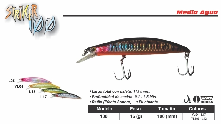 Seņuelo de media agua, Peso: 16 Grs., Tamaņo 100 mm